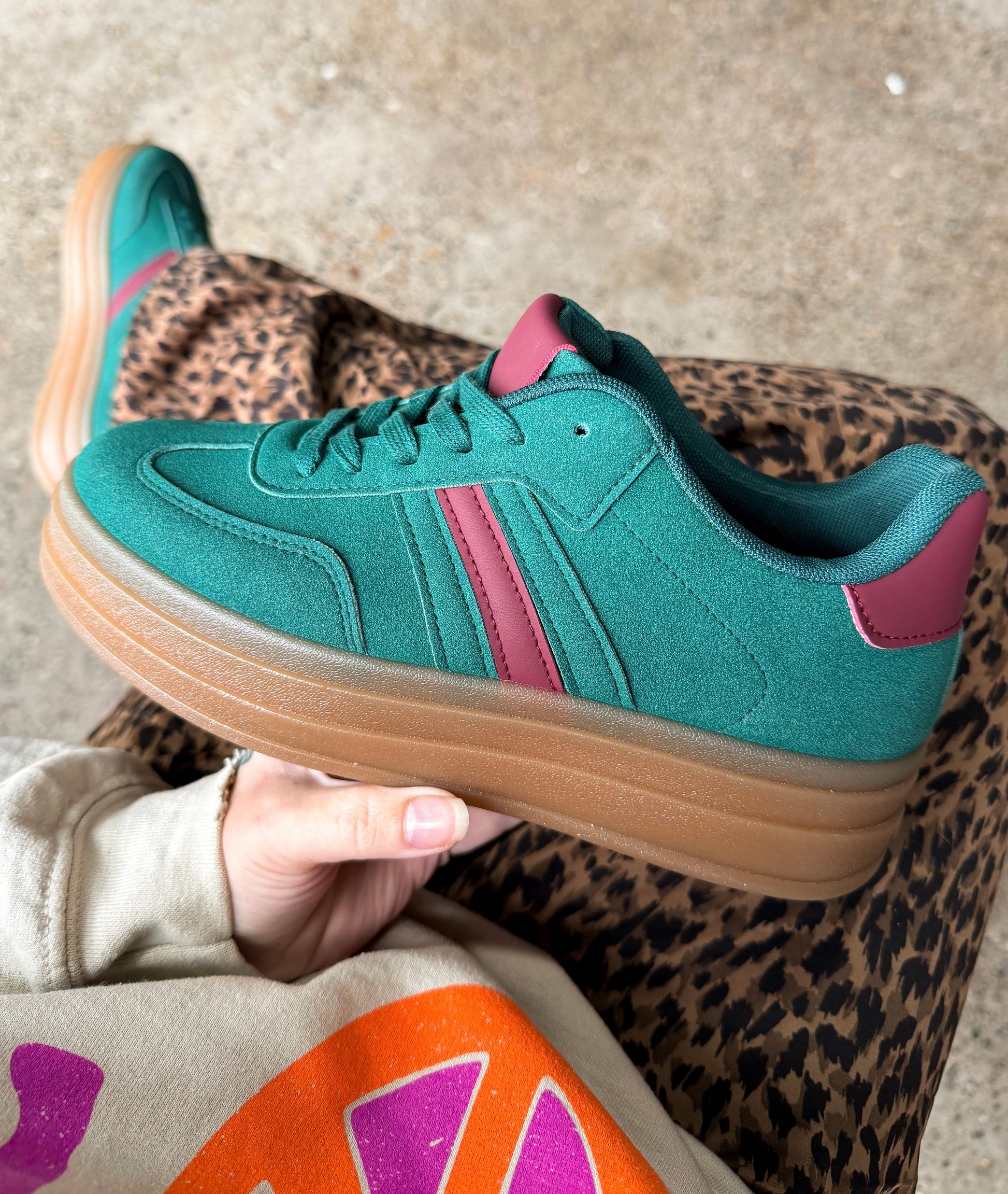 Asher Sneaker : Green + Burgundy