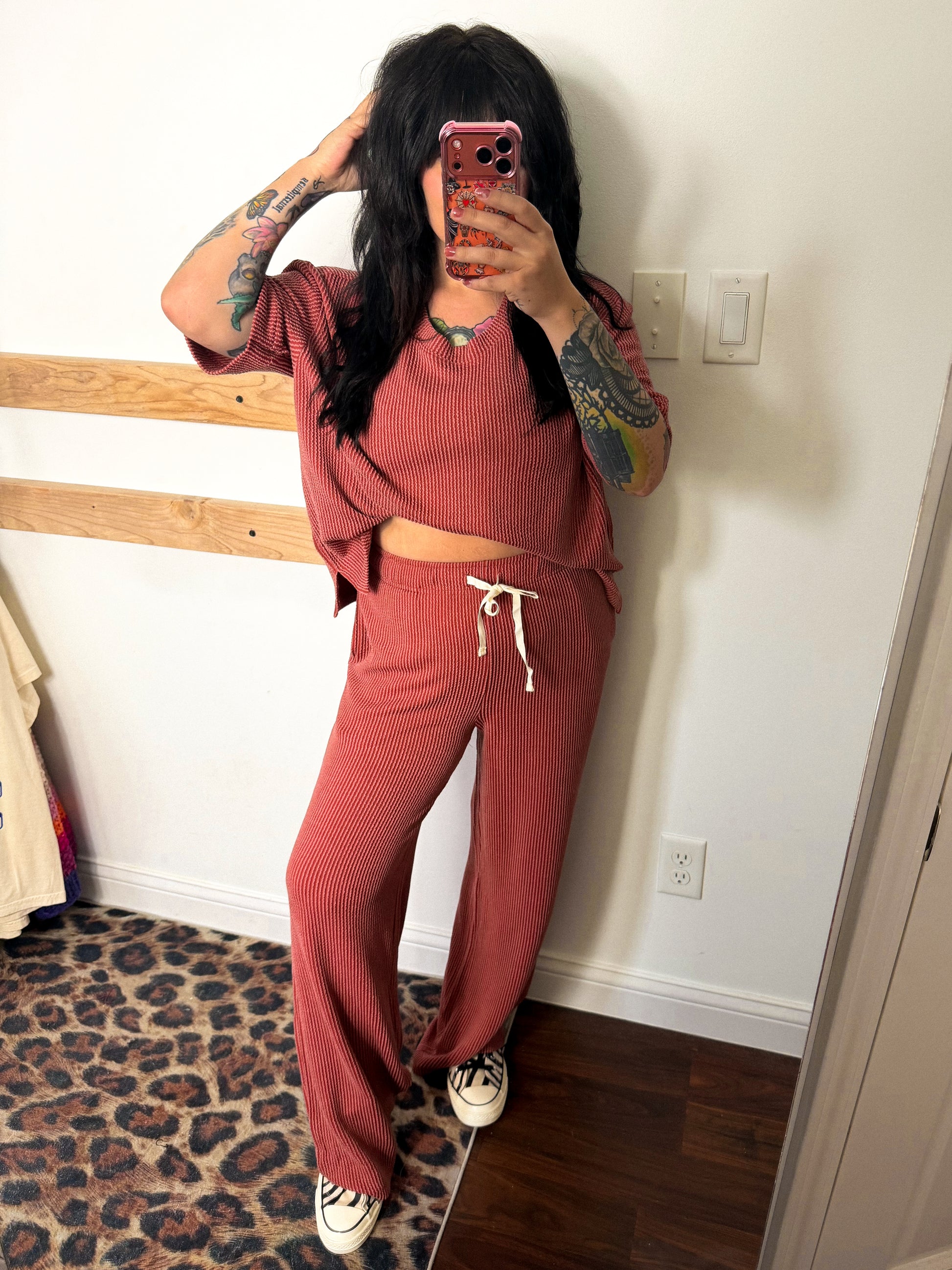 ☕️ Coffee Date Ribbed Set : An INSTANT FAVE! These sets are so stretchy & can easily be styled together or separate. Alli is 5 3” & L top & M bottom wearing the M set